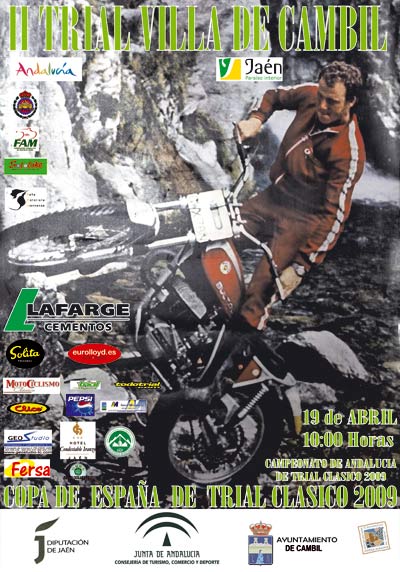 Gracias sobretodo al trabajo de un puñado de enamorados de esta especialidad, los amigos del Sotobike de Madrid, que nos han ilusionado por traer a Andalucía la segunda prueba de esta Copa 2009, después del éxito cosechado el pasado año en las laderas del Castillo de Santa Catalina en Jaén. En esta ocasión se ha decidido llevar esta prueba al municipio de Cambil dentro del Parque Natural de Sierra Mágina, un lugar encantador que cuenta con todos los ingredientes necesarios para conseguir organizar con éxito la prueba andaluza de la Copa de España de Trial de Clásicas.