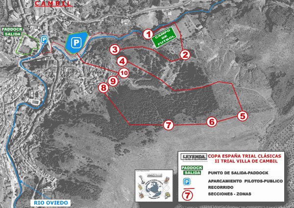 El trial contará con 12 zonas a dos vueltas, con una interzona de unos seis kilómetros, enclavadas la mayoría de ellas en el paraje Castellanos. La primera se montará junto al campo de fútbol de Cambil y será una zona de agua al más puro estilo clásico y muy accesible para el público con un amplio aparcamiento anexo.