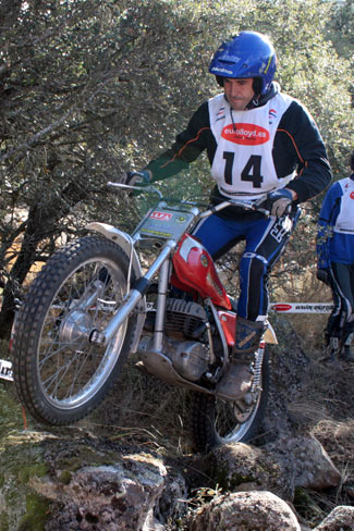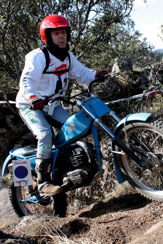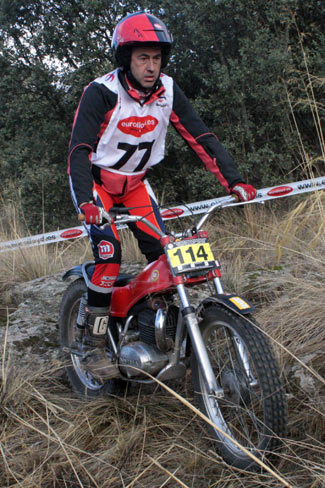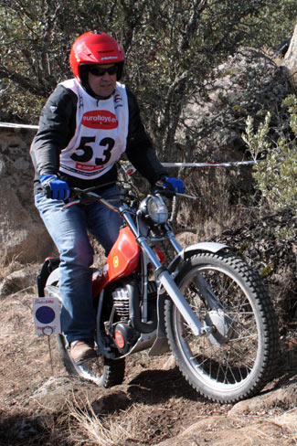 También volvía tras varias ausencias José Luis Ruiz Fernández aunque "fuera de concurso" al competir con una moto post-clasica, una vistosa Mecatecno Skywalker. Como recordaréis este año se permite la participación de motos post clásicas (con frenos de disco, monoamortiguador, pero con refrigeración por aire) en los triales de clásicas pero sin puntuar en las clasificaciones. Para el año que viene seguramente veremos a Jose Luís con opción a puntuar sobre una clásica, haciendo más interesante la categoría.