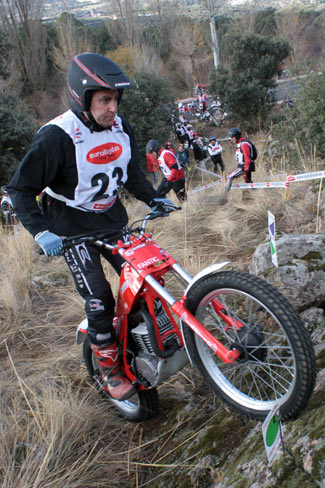 Pero la historia del trial en Madrid está ligada a este lugar desde mucho tiempo antes, pues ya en los 70 se organizaron numerosos triales aquí. Concretamente el primero fue el día 7 de Diciembre de 1975 (pincha aquí para ver el recorte de prensa de la época) y además entre los inscritos en aquella ocasión figuraban tres pilotos que hoy, 34 años después, siguen en activo y volvían a participar en este trial, Gonzalo Victoria de Lecea, Fernando de la Cruz y José Carlos Lorente, a los que se pueden añadir otros que en aquel trial no estuvieron pero sí eran ya habituales, como Luis Muñoz, Paco Callejo, Julián Sanz, etc. ¿En que otro deporte se puede ver algo asi?
