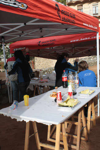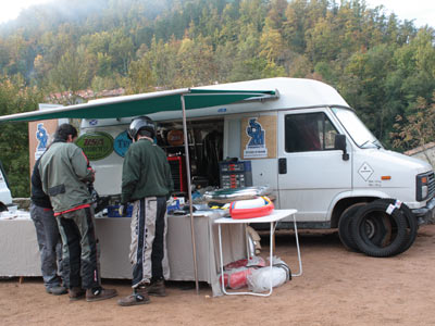 Tampoco faltaba una carpa con recambios variados para clásicas y hasta una guapa masajista que ofrecía media hora de masaje tras la prueba a un precio más que interesante. Otro detalle de la organización, además de la invitación a los dos desayunos y el regalo de la camiseta conmemorativa era el disponer de un garaje en el que guardar las motos durante la noche.