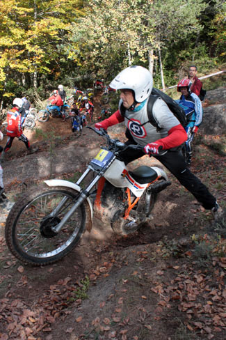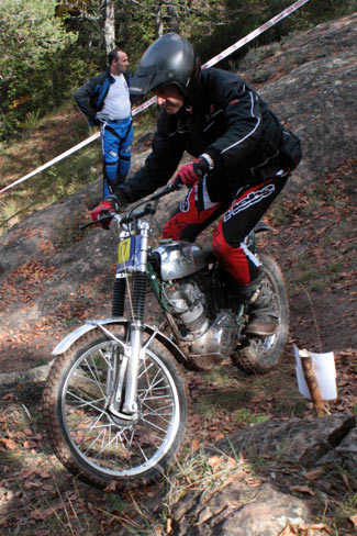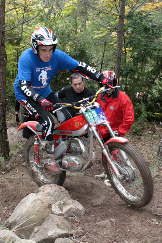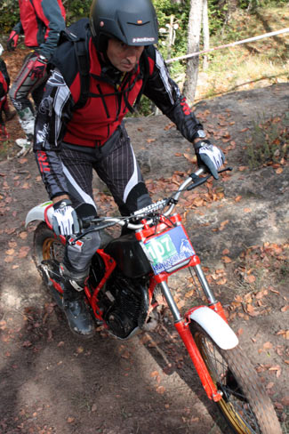 Así daba gusto ver la maestría de los pilotos sobre las zonas, haciendo fácil lo difícil, aguantando al máximo en cada obstáculo y demostrando lo realmente bonito que puede ser el trial clásico. Mientras algunos luchaban muy duro para matener sus tarjetas bastante limpias, otros no menos malos sumaban de vez en cuando algún punto que iba retrasándoles en la clasificación. Había que hilar muy muy fino para no quedarse atrás.