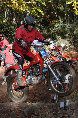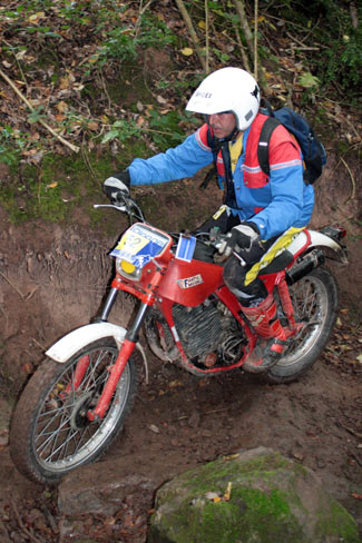 En Pre '77 un piloto destacó especialmente de los ocho participantes, Luís Díaz, al que le da igual estar de broma y cachondeo zona tras zona, quizás es una técnica de concentración porque el tío no suelta un pie de la estribera por nada. Así finalizó el primer día con un sólo punto, la mejor puntuación de todo el nivel verde para este ex-campeón experto, brutal.