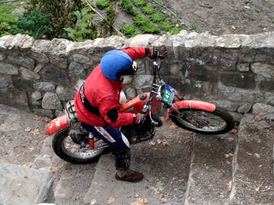 Lo peor del paddock clásico fue que al encontrarse en pleno centro de Sant Joan, fuese más difícil localizar aparcamiento que en los 3 días y lo mejor, además del ambiente, el encontrarse al lado mismo de la última zona, la de las escaleras, que ya se realizó en la primera edición del Trial de Santigosa en 1970.