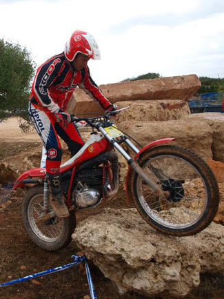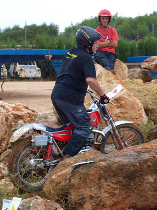 En Menorca, magníficamente organizado, el trial trascurrió en el recinto cerrado de "reciclaje" de la isla, es decir, en una especie de cantera llena de enormes colinitas artificiales de tierra, barro y piedras. En principio parecía que la cosa sería fea y aburrida, pero la lluvia persistente que embarró a todos, puso emoción a la prueba.