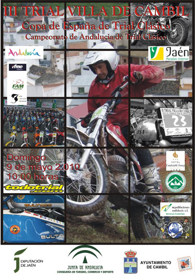 Gracias sobretodo al trabajo de un puñado de enamorados de esta especialidad, los amigos del Sotobike de Madrid, que nos han ilusionado por traer a Andalucía la segunda prueba de esta Copa 2009, después del éxito cosechado el pasado año en las laderas del Castillo de Santa Catalina en Jaén. En esta ocasión se ha decidido llevar esta prueba al municipio de Cambil dentro del Parque Natural de Sierra Mágina, un lugar encantador que cuenta con todos los ingredientes necesarios para conseguir organizar con éxito la prueba andaluza de la Copa de España de Trial de Clásicas.