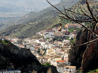 pueblo de Cambil con algo mas de 3.500 habitantes, se apiña en el fondo