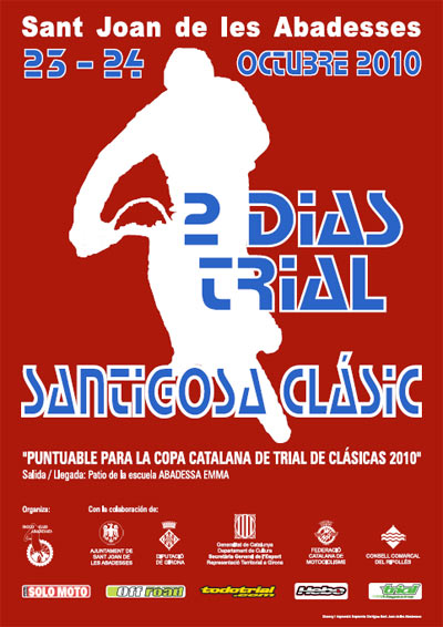 Con motivo de los 40 años de los "3 Dies Trial Santigosa" el Moto Club Abadesses está trabajando en un calendario de actos que se realizarán entre los 2DTS-Clàssic 2010 y los 2DTS-Clàssic 2011. El primero de los acontecimientos será una exposición fotográfica sobre "Los orígenes de los 3 Díes Trial Santigosa" que se inaugurará el sábado 23 de octubre, en el transcurso de la cual tenemos previsto presentar la agenda completa de actos de celebración de los 40 años de los 3DTS y del homenaje a nuestro Director de Carreras Ricardo Pinet.