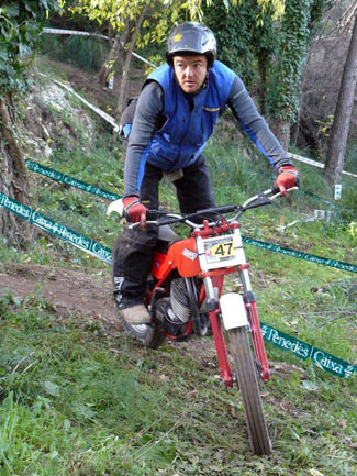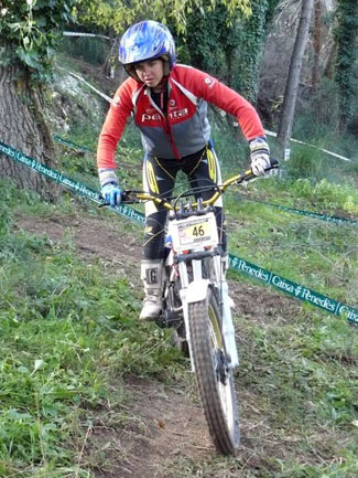 El frio intenso de primera hora de la mañana se fue apaciguando afortunadamente y se convertía en calor agradable a media mañana. El trial contaba con unas zonas bien marcadas combinando giros sobre hierba y tierra, laderas y algunos escalones en los bonitos y verdes terrenos de Sant Pere de Ribes.