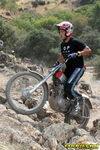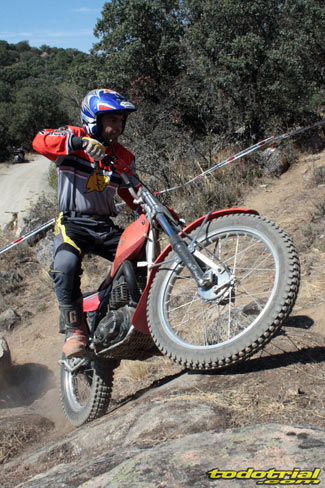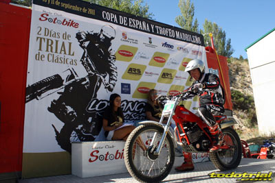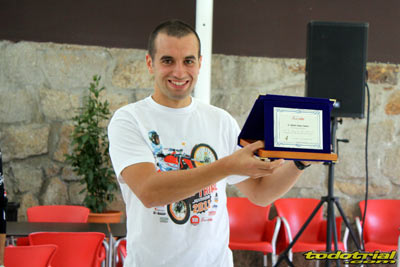 La salida comenzaba a darse a las 9, una hora antes, terminando a las 11. Por delante esperaba el mismo recorrido y las mismas zonas, sin ninguna variación. Esto ha planteado algunas quejas porque puede suponer alguna desventaja a quienes no han corrido el sábado, cierto, pero cierto es también que todos tienen la posibilidad de elegir correr sólo un día o dos, y si no quieren tener desventaja nada más fácil que correr ambos días. El día discurrió como el anterior, con la diferencia de tener fruta en la zona 15 en lugar de parrilla, y con un ritmo de carrera mucho más elevado, que facilitó terminar a una hora temprana y poder emprender viaje los que llegaban de lejos. A destacar la presencia del recién proclamado Campeón del Mundo Junior 2011, Alfredo Gómez, piloto del MC Sotobike, que quiso acudir a ver el trial junto a su familia, y de paso animar a su padre, por cierto, ganador en Pre 80. Alfredo recibió una placa de homenaje al finalizar el trial y fue el encargado de entregar los premios a los ganadores.