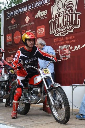Y es que esta era nada menos que la 41 edición del trial de Gall, que antes era el nombre que se le daba al de motos modernas puntuable para el Campeonato Catalán y ahora pasa, con todo su prestigio, al trial de clásicas. Trial de Gall significa en catalán Trial del Gallo, y esto viene del nombre de la ciudad de Ripoll, llamada en los documentos del siglo X y siguientes Riopullo, Rivipolli y Rivipullo, compuesto de ri (en latín: Rivus "río") y de poll (en latín: pullus "gallo"), es decir: Río del Gallo. Pero lo más curioso del trial de Gall, es que tradicionalmente su ganador se lleva como premio un auténtico gallo a casa!!! En esta ocasión se decidió que el gallo se lo llevaría el que menos puntos hiciese en las zonas de nivel amarillo.