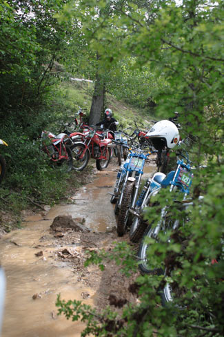 De echo la última tormenta fuerte caía el viernes previo al trial, cuando Josep Soldevila junto a Ramón Sallés y otros trialeros estaban ultimando todos los detalles del marcaje. La profesionalidad del Motor Club Ripoll es tal, que habían preparado zonas alternativas para el caso de que hubiese o no lluvia y también un recorrido de la interzona diferente. Por lo tanto tras la lluvia del viernes se decidió optar por las zonas para mojado y por el recorrido fácil, ya que el otro estaba muy embarrado.