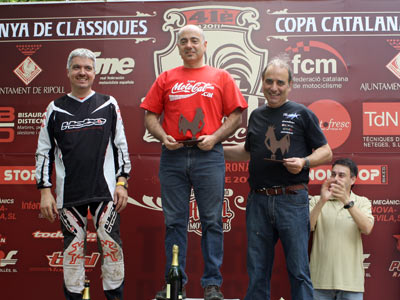 Tras la llegada de todos los participantes se publicaron rápidamente las clasificaciones y se procedió a la larga entrega de trofeos, ya que hubo premios tanto para los tres primeros de cada categoría en la Copa de España como de la Copa Catalana. Todos ellos recibieron el original trofeo en forma de gallo, y una botella de cava que era obligatorio descorchar para regar a quien pillase más a mano, lo que provocó más de una ducha inesperada. Y para que nadie se quedase con sed, se les entregaba después otra botella, que en este caso sí se podían llevar enterita para disfrutar en casa. Tampoco faltó la entrega del gallo, que fue para el joven Gerard Santos. Veamos lo que sucedió en cada una de las categorías.
