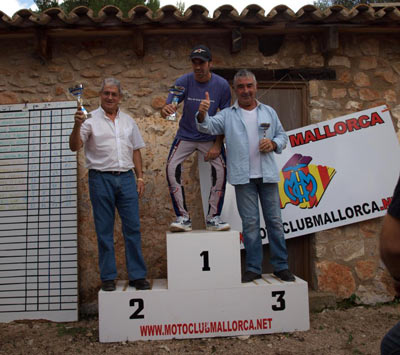 Las demás ya se habían realizado en ediciones anteriores, por lo que fueron modificadas, con un marcaje muy acertado según la opinión de los pilotos participantes. Clásicos En el recuento de la primera vuelta ya se advertía una dura lucha en las categorías de clásicos con Toni Sansó con 5 puntos y Rafa Ruiz y Manuel Morales empatados a 6 puntos. Aunque el ibicenco Rafa Ruiz ya era matemáticamente el campeón de Baleares de esta categoría, no dudó en desplazarse hasta Mallorca para finalizar el campeonato en una brillante tercera posición con 18 puntos seguido de de Manuel Morales con 16 y Toni Sansó con 12. Trialeros En la categoría de Trialeros, Xim Forteza y Agustín Roldán se disputaban el segundo y tercer puesto del "cajón" empatados a puntos (18), ganando Agustín Roldán con 12 ceros por diez de su contrincante y amigo Xim.