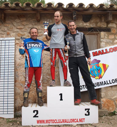 Y a un solo punto de diferencia (17) Francisco Salmerón fue el brillante ganador de la prueba, haciendo sólo dos pies en la segunda vuelta. Expertos En la categoría con más participantes de la prueba, la lucha fue encarnizada ya en la primera vuelta, con empate a 9 puntos de Guillermo Soler, Francisco Ferrer, Joan Thomàs y Joan Nadal, por 7 de Jaime Roig y 6 de Francisco Ramón. Ya en la segunda vuelta las diferencias entre los pilotos se fueron amplificando, y fue en la tercera vuelta donde se decidió el Trial, quedando en primera posición Guillermo Soler (19), Francisco Ramón(20) y Jaime Roig (23). Xicu Ferrer obtuvo el cuarto puesto en Expertos. Con esta prueba finaliza por tanto el Campeonato de Trial de Clásicas de Baleares 2012.