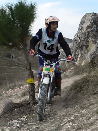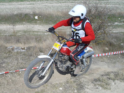 Con un punto más y en sexto lugar quedó Severiano Arroyo Martín (5-0-1) y luego otro triple empate a 7 puntos para los siguientes puestos. A partir de aquí las penalizaciones se fueron disparando hasta los 40 puntos del último clasificado. Clásicas C (CLC) Quince pilotos tomaron la salida en el nivel de color amarillo y dos pasos obligados por zona. Esta fue la categoría en la que más discrepancias hubo ya que para los primeros clasificados las zonas estaban muy fáciles mientras que los últimos decían que eran algo difíciles. En la primera vuelta ya se establecieron los tres primeros puestos que no variarían a los largo de la carrera. José Garrido Cardeña y su Honda TLR se llevaron el primer puesto al redondear la carrera con un cero y además en un tiempo que no llegó ni a las dos horas. El segundo lugar fue para José María Martínez Anaya que se desplazó nada menos que desde Valencia para venir a esta humilde carrera. Todo un detalle por parte del Campeón de España de clásicas (nivel amarillo) que denota su amor por las carreras de trial de motos clásicas. Con 1 punto, que para más "inri" le picó su mujer en la zona 1 de la primera vuelta, terminó la prueba, pero eso sí se lo pasó muy bien.