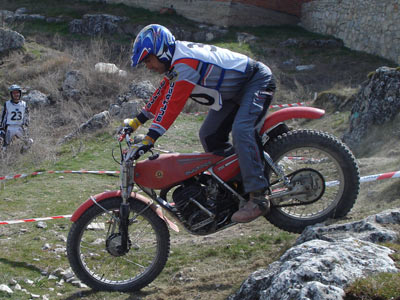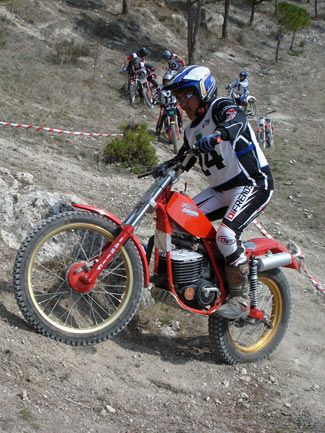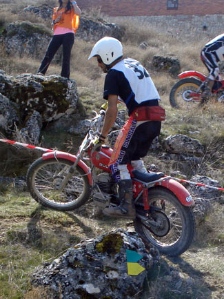 La filosofía con la que se pretende marcar los triales en Castilla y León es de 3 zonas que todo el mundo pase a 0 ó 1, tres zonas en la que cualquier puntuación sea posible pero que no sea el cinco y una zona más difícil, que marque la diferencia. Ésta es la intención a la hora de marcar, pero no siempre se consigue. La interzona, de unos 6 Km., fue sencilla y adecuada para las motos clásicas. El trial estaba planteado a 7 zonas y tres vueltas con un tiempo de 4,20 horas, tiempo que en esta ocasión resultó excesivo ya que todos los pilotos terminaron muy pronto y es que pensamos que las motos clásicas iban a ir más despacio, ¡vaya error! A casi todos los pilotos nos gustaría más número de zonas en las carreras, aunque sea con menos vueltas, pero la realidad nos hace ajustar éstas a un mínimo, ya que el principal y eterno problema es el conseguir jueces adecuados para las mismas, además de picas. Es por este motivo que la FMCL ya lleva 3 años haciendo todas las carreras con el formato de 7 zonas y tres vueltas y, en principio, se seguirá con este sistema en futuras ediciones ya que es la FMCL quién pone los jueces en las carreras y paga sus gastos. Por cierto, los jueces estuvieron acertados en esta carrera, por lo que desde aquí los tenemos que felicitar.