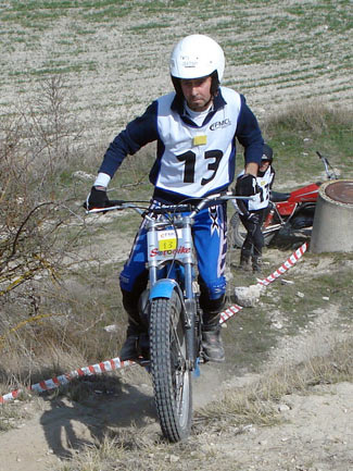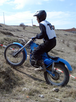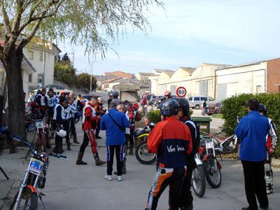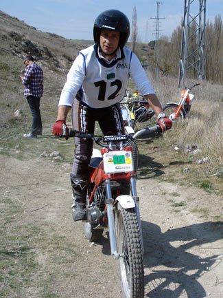 Las categorías convocadas en esta carrera fueron: clásicas A (nivel azul), clásicas B (nivel verde), clásicas C (nivel amarillo), copa de niños con motos automáticas (KCa) y copa de niños con moto de cambio (KCc). El nivel de participación en clásicas fue bueno pero el de niños estuvo escaso ya que sólo dos niños acudieron con motos automáticas (y mucha ilusión) y ninguno con moto de cambio. El número de pasos en todas las zonas era el mismo, 4 azules, 3 verdes y 2 amarillos. Un error por parte del delegado de trial (tendré que ir otra vez a la escuela para que me enseñen a contar, por lo menos hasta 5) hizo que en la zona 4 sólo hubiese 3 pasos azules y en la zona 5, 5 pasos. Algunos pasos, especialmente los amarillos, eran innecesarios y se pusieron sólo para que el número de pasos sea el mismo en todas las zonas. La cadencia de salida de los pilotos fue de dos pilotos cada minuto comenzando por los niños y terminando por el nivel CLA. Cuarenta y dos pilotos tomamos la salida en esta mañana dominical gracias a que vinieron bastantes pilotos de otras comunidades, especialmente de Madrid.