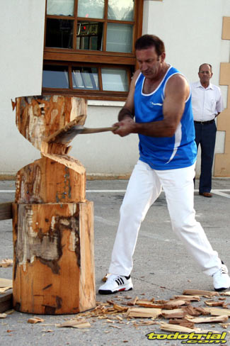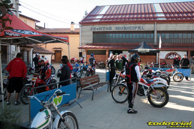 Nada que ver con aquella primera edición que fue totalmente pasada por agua, en una tormenta da lluvia y viento que puso a prueba hombres y máquinas, y que los que la vivieron aún recuerdan con una sonrisa a pesar del esfuerzo exigido. Y es que por lo general el aúténtico trialero, cuanto más duro sea el trial más lo disfruta, sea de Bilbao o de cualquier otro sitio... La actividad comenzaba el sábado por la tarde con la llegada de los participantes venidos desde más lejos. Las verificaciones se ponían en marcha en el frontón mundicipal, como habitualmente, donde se habilitaba también el parque cerrado cubierto. Con estas se recibía una camiseta conmemorativa de regalo. A las 19.30 estaba prevista frente al restaurante Izki, una curiosa exhibición de deporte rural vasco, por un lado corte de troncos, en modalidades horizontal y vertical, a cargo del cortador de troncos (aizkolari) José Etxebeste, y por otro lado levantamiento de piedra, a cargo de dos veteranos campeón y subcampeón de Europa.