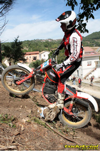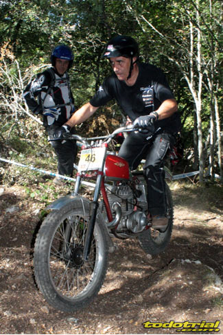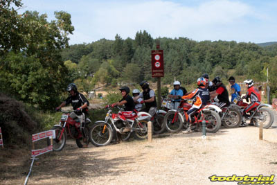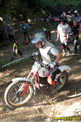 A la mañana siguiene la competición daría comienzo a partir de las 10, con la salida del primer participante. Antes se habían realizado las verificaciones de quienes llegaban esa misma mañana. Doce zonas a dos vueltas componían el trial, en un recorrido de unos 10 kilómetros. El terreno era el habitual, con variadas zonas de subidas y giros técnicos sobre laderas de tierra en el bosque, otras que combinaban la piedra y la tierra, con algunos escalones, o las subidas sobre piedra suelta y las rampas empinadas rampas de tierra con giros cerrados en las dos últimas. Zonas muy técnicas pero sin peligro alguno y muy bien marcadas para cada uno de los tres niveles. Unánimemente todos los participantes agradecieron el buen trabajo realizado por los organizadores, y la única queja fue que las 4 horas de tiempo concedidas fueron quizás demasiado escasas, lo que impidió disfrutar del paisaje y del trial con más calma, o en algunos casos poder solventar algunos problemas mecánicos sin quedar excluído por tiempo. Y es que en los triales de clásicas por lo general el aficionado antepone pasarlo bien y disfrutar del lugar a la pura competitividad o las prisas.