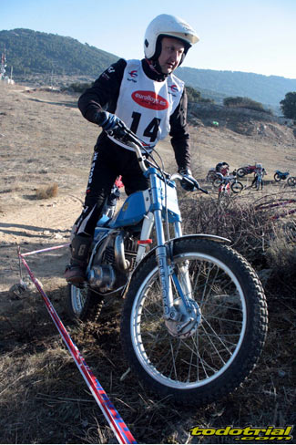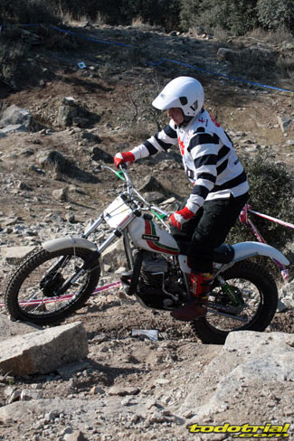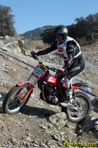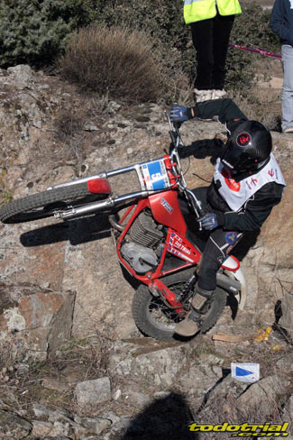 Repaso a las categorías Para finalizar el reportaje, daremos un repaso a las diferentes categorías, comenzando pro Expertos o nivel azul, donde sólo hubo 7 participantes. Quizás si se tendiese a un nivel de zonas un poco más accesible, evitando giros imposibles y secciones que permitan ser realizadas con cualquier moto, incluso una pre 80 como antes, se animaría esta categoría con más participantes. Entre todos ellos sigue destacándo Beltrán Martínez Peñalver, que desde que estrenó su espectacular Aprilia "Motos Limit" no hay quien se le acerque. Con sólo 16 puntos no tuvo rival y se llevaba la victoria, quedando los otros dos pilotos del podio a más de 10 puntos. Segundo era Paco Guzmán sobre Fantic con 28 y tercero Alberto Moreno con 19 sobre Honda, que este año sí continuará el campeonato al quedarse en España tras una larga temporada en el extranjero por trabajo. Doce puntos más atrás estaba Horacio San Martín "Yoyi" con Fantic, y a continuación José Luis Ruiz con Bultaco y Felix Iñiguez también con Fantic. La categoría Pre 80, nivel verde, parece reactivarse este año, ya que tras las últimas carreras con apenas dos o tres inscritos esta vez contaba con 7, pese a la ausencia de su campeón Arvy Portero. Se trata de una categoría muy interesante, tanto como las motos que participan y la lucha por la victoria, que en esta ocasión fue para Toño Villanueva sobre su Sherpa Kit al imponerse por un sólo punto a Carlos Varadé y su Sherpa 199A Puma. Algo más alejado, con 30 puntos, completaba el podio Migui García Cuesta con otra Bultaco Sherpa kit. A continuación otras tres Bultaco, la 198 de Javier Cruz, la 199 de Joaquín López y la 199A de Nacho Carro. Lástima de la retirada de Juan Antonio Sánchez.
