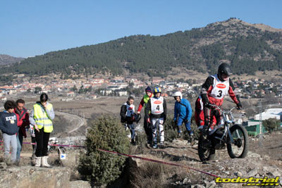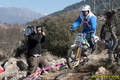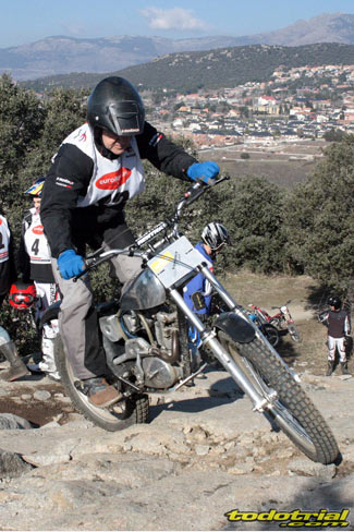 Pero a pesar de todos los problemas, estos se resolvieron salvo el de repetir la interzona del pasado año y al final quedó un bonito trial en el que además acompañó un buen día soleado y muy agradable. En algunas zonas se podía además disfrutar de las bonitas vistas a las montañas de Navacerrada, lleno de nieve y donde hasta se apreciaban los remontes de la estación de esquí funcionando. El magnífico día animó a que mucho público se acercase a ver el trial, algo muy positivo y que dice mucho en favor del atractivo de esta especialidad. Así había espectadores ilustres, que aunque no estaban compitiendo en esta ocasión por unos motivos u otros quisieron acercarse a ver a sus viejos conocidos, trialeros aficionados a los mandos de sus clásicas, familiares de pilotos o incluso aficionados de todo tipo con sus familias que disfrutaron presenciando un bonito día de deporte trialero en la naturaleza. También se veía a jóvenes y niños dando una vuelta en moto o interesándose por probar alguna clásica. Así se forma la afición y el futuro de un deporte, lo curioso es que esto se de más en las clásicas que en las modernas, pero bienvenido sea.