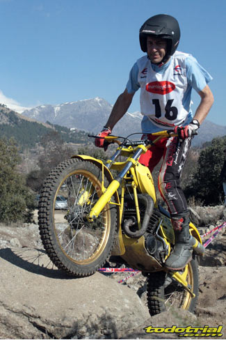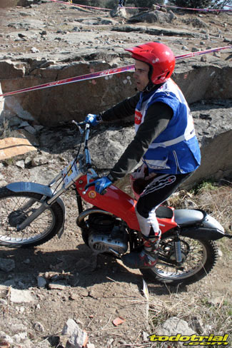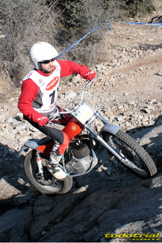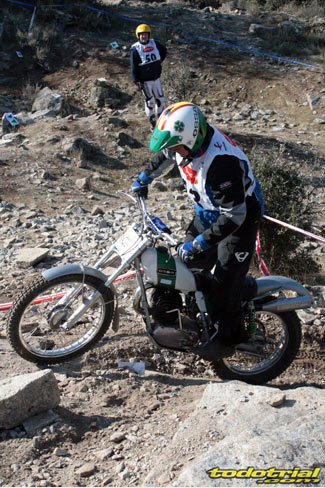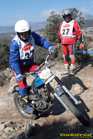 No muy lejos terminaba cuarto Miguel Fernández Cañete con Montesa Cota 247, y completaban la clasificación José Carlos Lorente con su triumph Pre '65 y José Luis Gutiérrez con Bultaco Sherpa Kit. Exitazo total en la categoría Clásicos, también en nivel amarillo, con nada menos que 45 participantes, muchos de ellos iniciándose en el trial o debutando. Esta categoría por tanto es la más importante y la que hay que cuidar más, para que sus participantes sigan disfrutando y se incorporen aún más que están pensándoselo. La organización quiso que las zonas fueran perfectas para esta categoría y así fue, ya que resultaron sencillas pero selectivas, con lo que las puntuaciones de todos los pilotos eran muy variadas, en los primeros abundando los ceros y en los úiltimos los varios, algunos cincos, pero también ceros y unos. Aquí nadie se puede quejar de que sea fácil el trial, ya que a quien se lo parezca así tiene otros dos niveles más por encima a los que subir. Uno de los pilotos realizó un trial perfecto, ya que no se dejó ni un sólo punto, nos referimos al veterano excampeón de clásicas B Alfonso Sánchez Eguibar. Su rival y amigo José Ramón Piñeira era segundo con 2 puntos, dando los primeros lugares del podio a sendas Montesa Cota 330. Con 6 puntos era tercero Luis Nieto sobre una Honda TLR 200. También con 6 se quedaba fuera del cajón Roberto Oeo sobre su Cota 247, al tener un cero menos en su tarjeta. Empate a 8 entre Angel Luis Cuevas y el joven Marcos Ávila, que se inicia en la competición de trial a través de las clásicas con buen pie, con 9 puntos Javier Sanz, con 10 Jorge Soriano, con 12 triple empate entre Jesús Ramos, José María San José y Julián López Castillejos, copando las 11 primeras plazas. Como veis hay muchísima emoción e igualdad, por lo que quedar entre los 15 primeros ya es todo un triunfo.