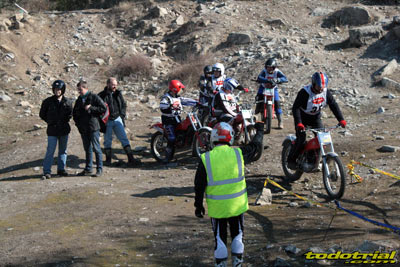 Básico para el éxito del trial en este caso era el tiempo concedido, que fue de cinco horas, con lo cual los participantes no tenían que ir con prisas ni habría nerviosismo o empujones en las colas. Increiblemente para lograr esto se tuvo que amenazar a la FMM con suspender el trial el miércoles anterior, ya que esta no aceptaba el reglamento particular del trial y quería imponer 4 horas de tiempo. De haber sido así podíamos haber pasado de un magnífico trial a un rotundo fracaso, con mal ambiente en las zonas, motos corriendo por la interzona entre el público, empujones en las colas y poco disfrute de los inscritos, que no lo olvidemos, son los clientes de la Federación. También básico era el que con 86 inscritos se dividiese la salida, partiendo los amarillos en la zona 4 y los azules y verdes en la 1, como así se hizo aunque también con pegas por parte de la Federación, como fueron también las dificultades para conseguir los jueces de zona.