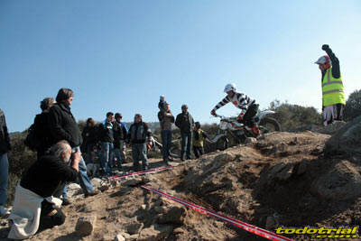 El ya conocido terreno de Collado esta vez estaba completamente seco, por lo que las zonas contaron con una gran adherencia, echándose de menos las zonas con agua y algo de barro como el año pasado a causa de la escasez de lluvias. Las ocho zonas a las que había que dar dos vueltas eran lo más variadas posibles dentro del terreno disponible, con pasos de piedra y tierra, giros en subidas y bajadas y giros muy técnicos y también muy apretados, que en el caso del nivel azul fueron excesivos en un par de zonas en las que la moto apenas cabía obligando a realizar movimientos laterales en parado, algo no demasiado clásico. Salvo estos detalles las zonas estuvieron muy bien, con un nivel perfecto para todos, sin peligro y lo suficientemente largas y bonitas. Por poner algo a mejorar, a parte de los giros poco clásicos donde no cabe una moto, el marcaje de la corta interzona fua bastante confuso y mejorable, aunque al final se llegaba a todas las zonas fácilmente ya que estaban muy cerca entre sí.