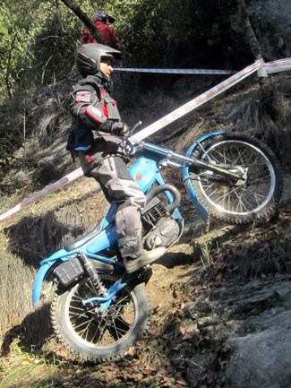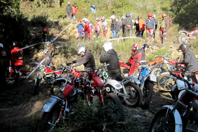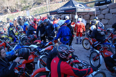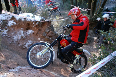 En cuanto a las zonas, fueron 10 a dos vueltas, con algunos problemas de tiempo, pese a que la organización, consciente de la dificultad del terreno, alargó el tiempo máximo de la prueba. Se decidió acertadamente dar 30 minutos mas de tiempo, 4:30 horas en lugar de 4, debido al estado del terreno y las zonas, estaba todo helado. Se informo de esto durante las verificaciones y en el punto de salida. Pese a ello, fueron varios los pilotos que llegaron fuera de tiempo y algunos otros penalizaron por su retraso. Pocas colas en las zonas, debido seguramente a una interzona larga y complicada que estiró totalmente a los participantes, que eran muchos. Y como pasa en el trial cuando el estado del terreno es complicado, algunas zonas mejoraban con el paso de los pilotos mientras que otras se convertían en casi imposibles. La zona 8, por ejemplo, consistente en el paso por un torrente con piedras y un final con giro a la derecha y salida en subida se complicó a lo largo del día hasta convertir la subida en prácticamente lisa y muy resbaladiza, que provocó innumerables fiascos ante la imposibilidad de subirla ni siquiera a pié.