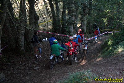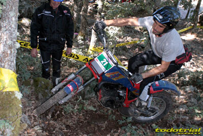Las zonas, como siempre, fueron muy variadas y sin peligro, destacando por su variedad y por su magnífico marcaje, ya que todas ellas eran muy naturales, sin pasos obligados demasiado retorcidos o forzosos, un trial clásico como debe ser y como a todo el mundo le gusta. Las más difíciles de pasar a cero fueron las marcadas en los resbaladizos regueros de la zona, que una vez más fueron una de las notas características de este trial, y es que las zonas de agua como estas ya difícilmente pueden encontrarse en otros triales. La interzona, de unos 25 Km., fue adecuada para las motos clásicas, aunque algunos pilotos de nivel amarillo tuvieron alguna dificultad puntual para pasar por algunos lugares. Algunas partes eran totalmente nuevas, subiendo hasta el vértice de la montaña por el camino que une los enormes molinos eólicos. Alguna fuerte subida a un cortafuegos fue también uno de los momentos más complicados para las clásicas, llegando a causar algunos calentones e incluso un desafortunado gripaje.