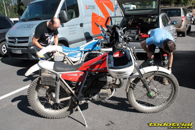 El control de mesa y paddock se ubicó en las completas instalaciones deportivas del área de trial y en el control de resultados estuvo, como siempre, Juan Pérez Salgado, quién también controló los resultados de la Copa de España de Clásicas, que se celebró en la jornada del domingo junto con la Copa de Castilla y León. El Trofeo Madrileño de Clásicas y el Trofeo por equipos Sotobike, puntuaban como prueba única, teniendo en cuenta los resultados finales de los dos días. El viernes por la tarde el paddock ya estaba en plena actividad con la llegada de la mayoría de los pilotos, procedentes de los más diversos lugares, desde los lejanos isleños llegados de Canarias y Baleares, hasta los de Andalucía, Extremadura, Cataluña, Valencia, Galicia, Madrid, Castilla la Mancha y por supuesto Castilla y León. En las verificaciones técnicas se observaba cada moto correctamente para comprobar la correcta elección en cada categoría, según el reglamento del Trofeo Sotobike, verificando las partes originales de las motos. Recordad que en los triales del Trofeo Sotobike hay categoría Open para las motos con piezas no originales que no cumplen el reglamento y también categoría Post-Clásicas abiertas a motos con frenos de disco y monoamortiguador pero refrigeración por aire, ambas penalizadas con mayor coeficiente de penalización en las puntuaciones.
