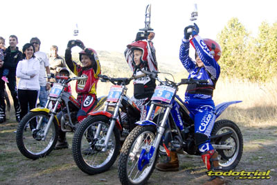 El segundo y tercer puesto estuvo muy reñido ya que tanto Marina como Alba empataron a puntos en los pasos por las zonas 2 y 3; sin embargo, Alba había sacado a Marina 3 puntos de ventaja en los pasos por la zona 1 que le valieron para terminar segunda con 15 puntos quedando el tercer puesto para Marina con 18. Al final todos contentos, en especial los padres de los pilotos que posaron con orgullo detrás de sus hijos/as. Cuando se terminó el trial de niños se procedió a la entrega de trofeos, al pie de zona y después todos los peques estuvieron entrenando y divirtiéndose (que es lo más importante) por la zona. Trofeo Madrileño Para finalizar comentar también brevemente los resultados de la que ha sido la sexta de las ocho pruebas puntuables para el Trofeo Madrileño de Clásicas, ya que Pobladura contaba teniendo en cuenta la clasificación final de los dos días pero sin los coeficientes, al igual que en el Campeonato de España. en este campeonato sólo puntuan los pilotos con licencia Madrileña.
