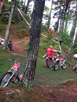 Si juntamos trial en condiciones de lluvia y humedad, con un trialero británico y además este es un piloto mítico ex-profesional, aunque sea del Mundial de velocidad, tendremos una mezcla explosiva difícil de superar. Y así fue en la categoría Pre '65. ya en el nivel amarillo, en la que Mick Grant (BSA) se sintió como pez en el agua y no dio la más mínima opción a sus esforzados rivales. Con un espectacular parcial de sólo 4 puntos, Grant terminaba como líder destacado el sábado por delante de Kiku Carbonell y su Sherpa N (11) y Salvador del Campo con su James (14). El resto estaban algo más atrás encabezados por Rafael Caballé (25) seguido del también británico Phil Readshaw (28), Javier Gil (33), otro británico y actual constructor de las Dot, John Bull, el francés Patrick García (45) y Salvador del Campo "padre" con 49. El resto acumulaba puntuacions ya bastante altas y algunos sufrían problemas mecánicos que obligaron a la retirada en algunos casos.