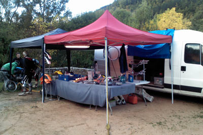 Quizás para mejorar sería bueno que el control indicase con la mano la penalización al piloto, de modo que este verificase que se le había anotado correctamente. El caso es que las clasificaciones del primer día variaron bastante en el segundo tras las reclamaciones, cosa que no suele suceder cuando se utilizan tarjetas, pues las reclamaciones son mínimas. Así transcurrieron las dos jornadas de trial que, como es tradición, comenzaban con la formación del vistoso parque cerrado y el desayuno ofrecido en las carpas de la organización, esta vez bajo techo. Antes la obligada verificación, con la que se recibía de regalo una camiseta conmemorativa. A destacar el gran ambiente, con pilotos llegados desde los más diversos lugares, como Gran Bretaña, Suiza, Francia, Baleares, Valencia, País Vasco, Madrid, y por supuesto todos los rincones de Cataluña. El sábado la salida comenzó a las 10 y el domingo a las 8:51.