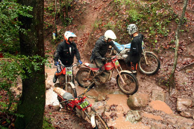 Aunque las previsiones daban lluvia asegurada para el fin de semana y no se equivocaron, la cosa no fue tan grave como se anunciaba. Las lluvias comenzaron el viernes, por lo que el sábado a primera hora ya estaba todo bien embarrado. Durante esta primera jornada de trial el agua cayó durante garn parte del día, pero de manera suave salvo algunos momentos en que arreció con más fuerza. La mañana del domingo amanecía con algo de sol y se podían ver recovecos de cielo azul, pero las nubes negras se acercaban cada vez más. Esta vez la lluvia fue muy escasa haciendo que el trial fuese un poco más llevadero, pero el barro y la humedad ya habían dejado totalmente anegados las zonas y lo que es peor, los caminos. Pero nada de esto fue problema para el experimentado Moto Club Abadesses, que ya habituado a este tipo de situaciones y pese a haber marcado las zonas para seco en las semanas previas, se puso en marcha para revisar absolutamente todas las zonas justo antes del paso de los pilotos. El trabajo, con Carlos Casas al frente, no pudo ser mejor, ya que todas las zonas quedaron perfectamente adecuadas a cada nivel, aunque forzosamente muchas de ellas quedaron bastante más complicadas.