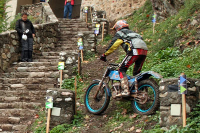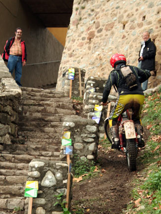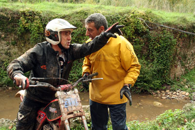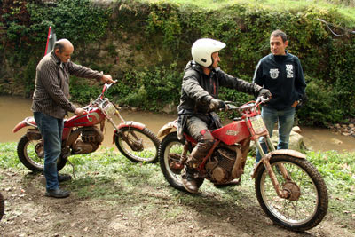 Las fuertes subidas y bajadas sobre la arcilla fueron muchísimo más complicadas que las zonas, obligando a muchos pilotos a tener que bajar de la moto en algunos momentos o ayudarse a subir una de las rampas del recorrido. Por los caminos también había que tener muchísimo cuidado y tocar los frenos con muchísimo tacto, en especial el delantero. Hubo más caídas en estos lugares que en las zonas. Pero aquí está precisamente una de las carecterísticas de Santigosa y su atractivo, ya que como buen trial auténtico, el recorrido y no sólo las zonas forma parte importantísima de la dureza de un trial, algo que lamentablemente se ha ido perdiendo con el paso de los años en los triales de modernas, y motivo por el que incluso algunos trialeros se han pasado al enduro o a realizar excursiones por su cuenta. El tiempo concedido de 5 horas fue suficiente para disfrutar del trial sin prisas, e incluso solventar algunos problemas mecánicos, que fueron numerosos. Sin duda más acertado que dar un tiempo más ajustado y que ya levantó las críticas en alguna edición anterior. De esta manera no había empujones en la entrada de las zonas ni prisas o nervisismo, como debe ser un trial para disfrutar.