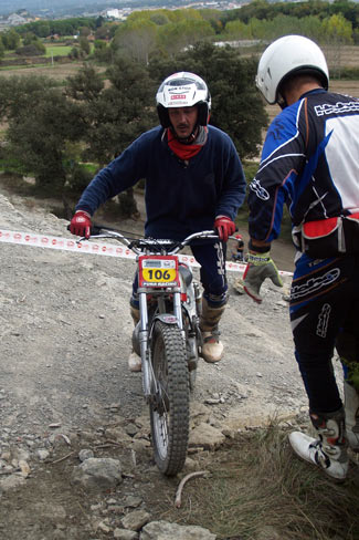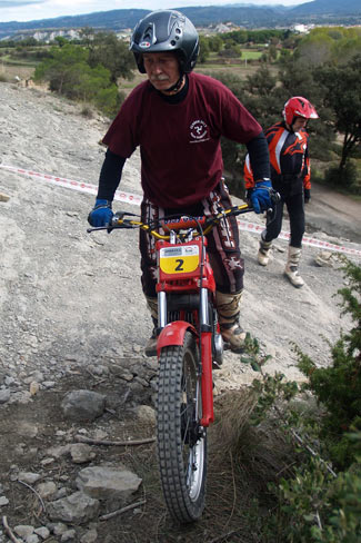 Todos ellos estaban inmersos en una apretadísima lucha, con algunos más también muy cerca, como Alvar Bertrán y Xavier Vallés. Vilarnau se ponía líder tras el primer giro con sólo 3 puntos, pero con uno más había un triple empate entre Bonfill, Campoy y Bertrán. Con 5 estaba Vallés, con 6 Cirera y con 7 Jové. Precisamente este último era quien lograba remontar en las siguiente doce zonas, en las que sólo se dejaba un pie logrando el mejor parcial del día, pero Bonfill y Vilarnau se mantenían firmes y con 2 puntos le precedían en el resultado final. Así Vilarnau se llevaba el primer puesto sobre su aligerada y afinadísima Triumph 4T con 5 puntos, Bonfill sobre su Fantic era segundo con 6 y con 8 cerraba el podio Jové y su Ossa, desplazando por número de ceros a Manel Campoy al cuarto puesto. Quinto era Miquel Cirera, sexto Alvar Bertrán y sexto Xavier Vallés. En la general también sigue todo tan apretado, ya que Bonfill es líder pero con sólo 4 puntos sobre Jové, mientras Campoy está algo más atrás, a 9 puntos de Jové y Bertrán a 12.