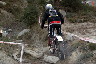 Experts, Narcís Sánchez remonta y gana En la categoría azul, el nivel de los pilotos y las zonas es cada día más alto y ya está al nivel de la extinta categoría roja o master, ya que de hecho casi todos los participantes son los que corrían en esta, mientras los que lo hacían en Experts ahora están en Trialers o Pre 80, por lo que quizás habría que replantearse el retorno del nivel Master. Diez participantes tomaron la salida, pero ocho llegaron al final, al retirarse Ricard Monge y Jaume Sardañés. La lucha estuvo bastante igualada entre Narcís Sánchez, Genís Sánchez y Carles Esteve, que finalizaron en este orden con 18, 22 y 24 puntos respectivamente. Aunque Genís era líder en el primer giro, Narcís con su SWM realizó una muy buena segunda vuelta con sólo 5 puntos que le valió la victoria. Otro de los candidatos a la victoria y al título, Antoni Ramonet, esta vez quedó cuarto a sólo 5 puntos del podio.