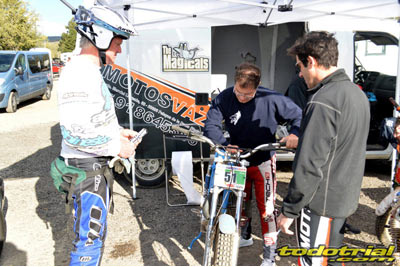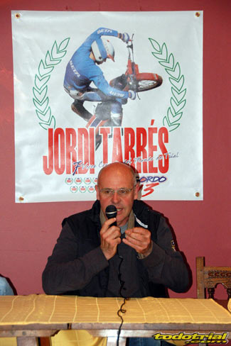 Desde sus inicios en la bicicleta, su primera moto, una Cota 349 preparada por Trueba que confesó ser la única moto que ha comprado, su paso por Beta y Gas Gas, su cambio de piloto a preparador que culminó con el título de Adam Raga y su posterior reto de crear su propia marca, la JTG. Todo ello contando con Manuel Soler como maestro de ceremonias e ilustrado con una interesante presentación de diapositivas preparada por Jorge de Lorenzo. Jordi se mostró ameno y abierto, contando todo tipo de detalles. Con un gran aplauso concluyó la charla, a la que siguieron numerosas fotos, firma de autógrafos y preguntas por parte de numerosos aficionados y admiradores. Día 2, domingo Tras un intenso primer día, quedaba otra segunda jornada de magnífico trial. El día amanecía soleado y algo más cálido, pero a final del trial las nubes amenazaron con tormenta, aunque afortunadamente sólo cayeron unas gotas durante la entrega de premios.