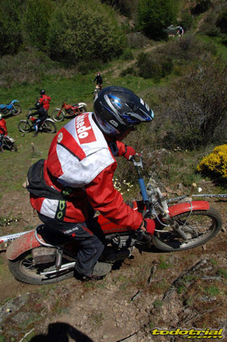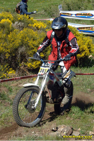 La espera de los resultados del primer día se estiró hasta la mañana del domingo, y es que el MC Sotobike ha estrenado un nuevo programa de gestión de clasificaciones que dio algunos problemas por falta de adaptación a las peculiaridades del Trofeo Sotobike. Todas las incidencias van a ser solucionadas por lo que para la cita de Maeztu seguro que la presentación de clasificaciones será casi inmediata a la finalización del trial. Así, a primera hora de la mañana del domingo, los pilotos se agolpaban para ver sus puntuaciones, y de todos ellos destacaba el campeonisimo Tarrés, con un cero en su casillero. A las 9 daba comienzo la salida, que se alargaba hasta las 11, ya que acertadamente la organización decidía dar la salida de cada equipo con un margen de dos minutos, solucionando el error del sábado. Y así fue, ya que en esta jornada no hubo colas. En esta ocasión se habían eliminado tres zonas, acortando el recorrido, y unas cinco habían recibido cambios para hacerlas más difíciles y selectivas, en vista de los empates a pocos puntos en la jornada del domingo, especialmente en la categoría amarilla.