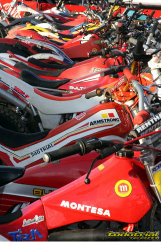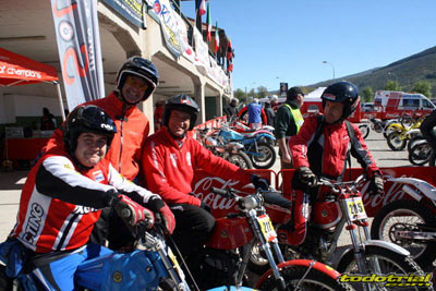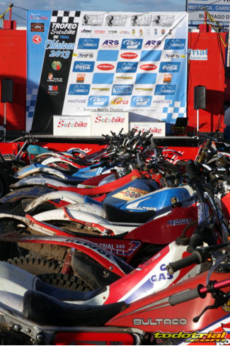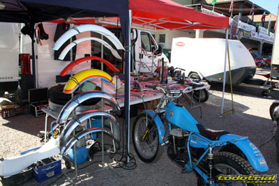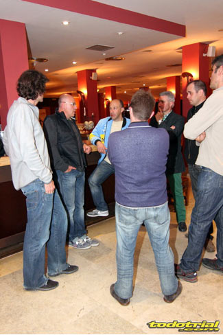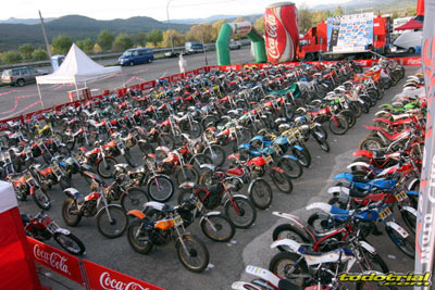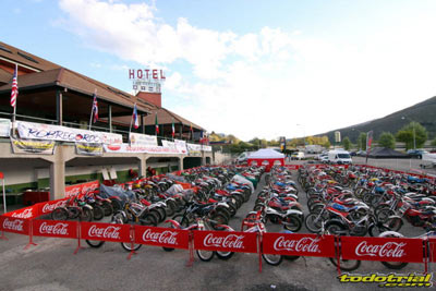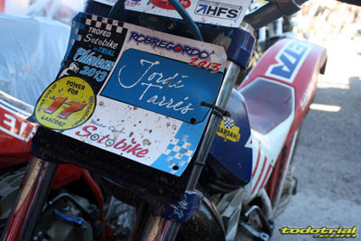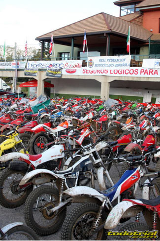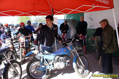 Los miembros de la organización llevaban ya meses trabajando para tener todo listo, pero la tarde del viernes suponía el inicio de la actividad más frenética con la llegada de los primeros participantes. El parque cerrado empezaba a llenarse de motos clásicas, las verificaciones administrativas y técnicas mostraban ya algunas colas, y es que esta edición ha vuelto a superarse con un total de casi 230 inscritos. Como siempre, en la verificación se recibía el dorsal y una bolsa con algunos obsequios ofrecidos por diversos patrocinadores, una camiseta conmemorativa y una placa portanúmeros de recuerdo personalizada con el nombre de cada piloto. Pronto el bar y la terreza del Hotel Los Cerezos estaban llenos, así como todos el resto de alojamientos de la zona, que colgaban el cartel de "completo". Actividades deportivas como esta aportan una importante inyección económica cada año, y en el caso del trial además ofrecen un gran atractivo para el público y todo ello siendo completamente compatible con la naturaleza, pues conviene recordar a los señores políticos y a los agentes medioambientales que la moto de trial es el vehículo más ecológico del planeta después de la bicicleta.