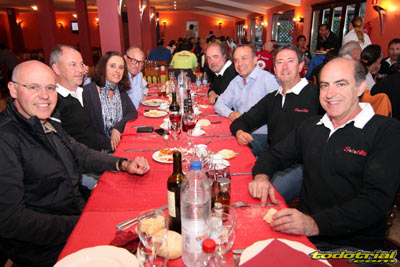Cena y charla con Jordi Tarrés Pero el trial de Robregordo no acaba con las zonas, es un evento que ofrece mucho más. Tras disfrutar de las vistas al parque cerrado desde la terraza, frente a la montaña iluminada por el sol del atardecer, compartiendo tentenpié y charla con los compañeros pilotos, llega el momento de la cena de confraternización, que en esta ocasión se adelantaba a las 8:00 para que no se hiciese demasiado tarde. Tras esta llegaba un momento que resultó de los más interesantes del fin de semana, junto a 3 de sus motos (Beta TR34 Réplica de 1988, Beta Zero de 1990 y la Jotagas 2013) Jordi Tarrés nos contó toda su trayectoria deportiva, desde los inicios hasta la actualidad. Sus retos, sus logros, sus mejores y peores momentos, curiosidades, anécdotas y hasta interesantes detalles que nunca antes habían salido a la luz.