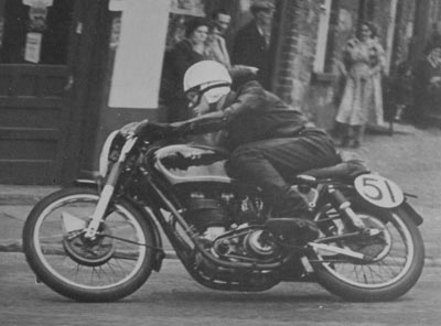 Pero el principal escollo sería su madre, que no era precisamente una enamorada de las motos. Aunque a su padre le gustaban, el mero hecho de mencionar la palabra moto ante mamá... podía ser peligroso... Así Sammy tuvo que guardar la moto en casa de su tío, a medio camino entre Belfast y Templepatrick, por lo que cada vez que quería usarla tenía que darse un paseo de 5 millas a buscarla. Aún así era un chico afortunado, pues pocos de su edad podían tener su propia moto. Con ella también tuvo que aprender, por fuerza, a hacer las primeras reparaciones mecánicas. A pesar de ser muy cuidadoso de no caerse para no dar ningún disgusto a su madre, en la mente de Sammy aún estaba la idea de convertirse en piloto de carreras. Con la Francis Barnet poco podía hacer así que decidió cambiarla por una New Imperial 150. Con ella se apuntó en su primera carrera, un grass track (carrera sobre hierba) en Mullusk. Pero su inexperiencia le jugó una mala pasada, y es que las bujías de serie no aguantaron ninguna de las dos mangas de la prueba. Al menos había aprendido una lección para la próxima vez, y llevaría unas bujías apropiadas. Al año siguiente, 1951, en Downpatrick se celebraba otro grass track. El terreno estaba totalmente embarrado y Sammy ganó en la categoría hasta 200cc. A la alegría siguió el terror de tener que llegar a casa diciendo que había participado y ganado en una carrera!!! El grass track estaba bien, pero lo que Sammy quería era competir en pruebas de velocidad. Una curiosa anécdota fue que un profesor de la High School de Belfast, donde estudiaba Sammy entonces se interesó por las ambiciones profesionales de su alumno. Cuando vio que el único objetivo de Sammy eran las motos, le tomó por un loco y un auténtico vago... Por aquel entonces Sammy aún utilizaba la bici para ir al cole, y siempre llegaba tarde a casa porque después de clase se iba con ella a pasar por los más complicados y resbaladizos obstáculos. Incluso a menudo iba a un lugar en el que practicaba los derrapajes sobre un resbaladizo suelo de terrazo. A veces se agrupaban un buen número de chavales como espectadores, entre ellos numerosas chicas, lo que le hacía especial ilusión.