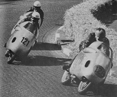 En estas pruebas de velocidad había una clasificación general, y otra para principiantes en la que se aplicaban handicaps que correspondían a ventajas de tiempo en segundos, así según la moto o la experiencia, hasta un novato podría conseguir un buen resultado en esta clasificación. En esta su primera carrera, a Sammy le dieron un handicap de ventaja de 5 minutos y 30 segundos. Con una velocidad media en la carrera de 118 Km/h, Sammy lograba el segundo puesto, no en la clasificacion con handicaps sino en la total!!! Todos se sorprendieron de lo que había hecho ese chico, cuyo nombre les sonaba haber oído poco antes en alguna parte... Sammy confesó que al enterarse de que le habían dado tanta ventaja en el handicap, quiso demostrar que no lo necesitaba y fue a por la clasificación scratch... ¿Vaya, sería esta especialidad tan facil...? En su siguiente prueba, la Skerries 100, todos se preguntaban si lo de Cookstown había sido una casualidad, pero Sammy volvió a ser segundo, y en ambas clasificaciones, la absoluta (scratch) y la de handicaps, impresionante. En la siguiente carrera su moto perdía aceite que caía sobre la rueda... "no problem" Sammy continuó la carrera pilotando como si estuviese en un speedway... hasta que pasó lo que se temía, una caida, aunque sin más consecuencias que heridas y quemaduras varias por el cuerpo. Lo peor sería volver a casa y que su madre se enterase de su primer accidente de moto... ya que como sabéis, no le gustaban nada las motos. Afortunadamente sus padres no estaban en casa, habían salido de vacaciones, y sus amigos le ayudaron a curarse y en la reparación de la moto.