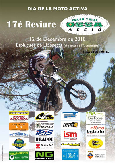 Todo el equipo del Grup Ossa Acció, en colaboración con el Motoclub Esplugues y con el apoyo del Ajuntament d'Esplugues de Llobregat y las empresas colaboradoras, están trabajando para que tanto los más jóvenes, como los que ya no lo somos tanto, encontremos un entorno donde la gente, las motos, el trial, y la magia de la naturaleza con el colorido de las cintas y las flechas del marcaje de zonas hagan de este un día inolvidable.