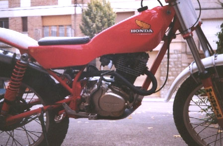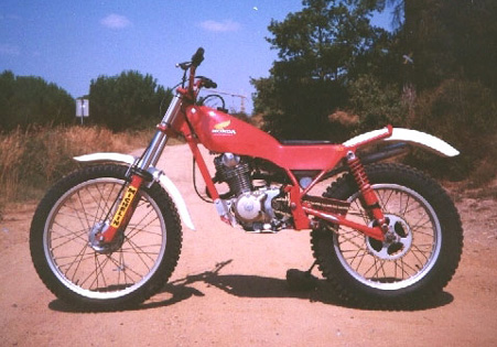 Ahí nace la historia de nuestra protagonista, ya que pronto empezaron a verse en los triales del Reino Unido motos artesanales, con motor Honda 4 tiempos derivado de la TL 175 fabricada en Japón, una moto con una apariencia horrorosa (muchos recordareis el "engendro" que pilotaba Eddy Lejeune cuando se iniciaba en el mundial). El remedio, pues, era simple, había que tomar como punto de partida el propulsor de la Honda TL 4tiempos 175 cc que sí se comercializaba por la época, se le aumentaba la cilindrada hasta aproximadamente 200 cc, y sobre esta base se construía un chasis a medida, cosa de hecho muy fácil en Inglaterra a causa de la gran cantidad de especialistas en el tema, se la vestía con unas fibras de apariencia oficial y ya tenemos la moto de nuestros sueños, que tracciona de maravilla, funciona relativamente bien en los triales de poca adherencia habituales en la zona, y no sirve para ganar el campeonato, pero que importa, ¡con lo bien que suena!.