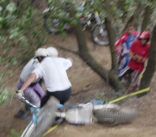 Tras unos cien metros te encontrabas en la zona dos, para amarillos dos giros seguidos bastante fáciles. Más de un novato, fue capaz de pasarla a cero. Estas dos zonas estaban cerca de la salida, lo que facilitaba que el público en general se acercara a verlas. Tras una interzona interesante llegabas a la zona tres. Entrabas, pasabas entre una roca y un arbol, con un giro donde más de uno se dejó un pie, y salías tras una pequeña subida tras otro giro.