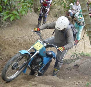 Las zonas se dividían como suele ser habitual en la Copa Catalana en tres niveles de dificultad, amarillo, azul y rojo, de menos a más. La primera zona en amarillos marcó alguna diferencia, no por su dificultad sino porque parecía más difícil de lo que era. De hecho a más de un participante se le escaparon los únicos puntos de todo el trial en ella. Tenía un pequeño escalón a la entrada y una subida larga con alguna raíz en medio. Más de un voluntario estuvo a media subida para ayudar a los que se quedaban. Para azules y rojos se introduciá un giro y otro pequeño escalón que incrementaba un poco la dificultad sin, en ningún momento, poner nada en peligro.