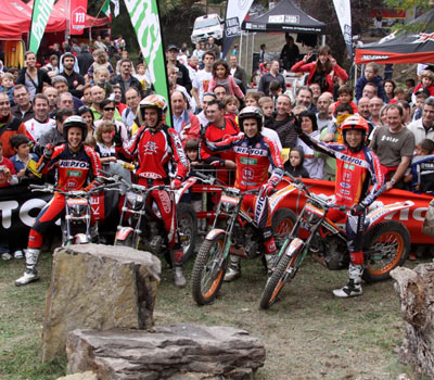 La presencia de todos los Campeones del Mundo que militan en las filas del Team Montesa HRC ha atraído a un numerosísimo público ansioso de ver sus espectaculares pasos por las zonas. Toni Bou, Laia Sanz, Takahisa Fujinami y Alfredo Gomez han hecho las delicias del público con sus exhibiciones y ganas de ofrecer espectáculo.